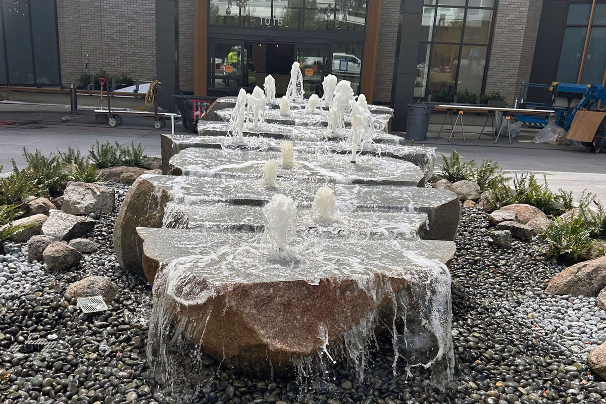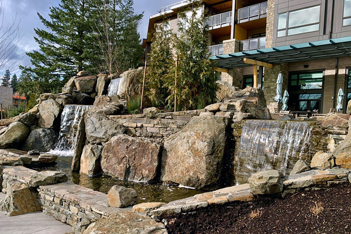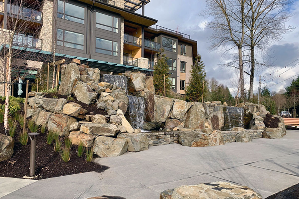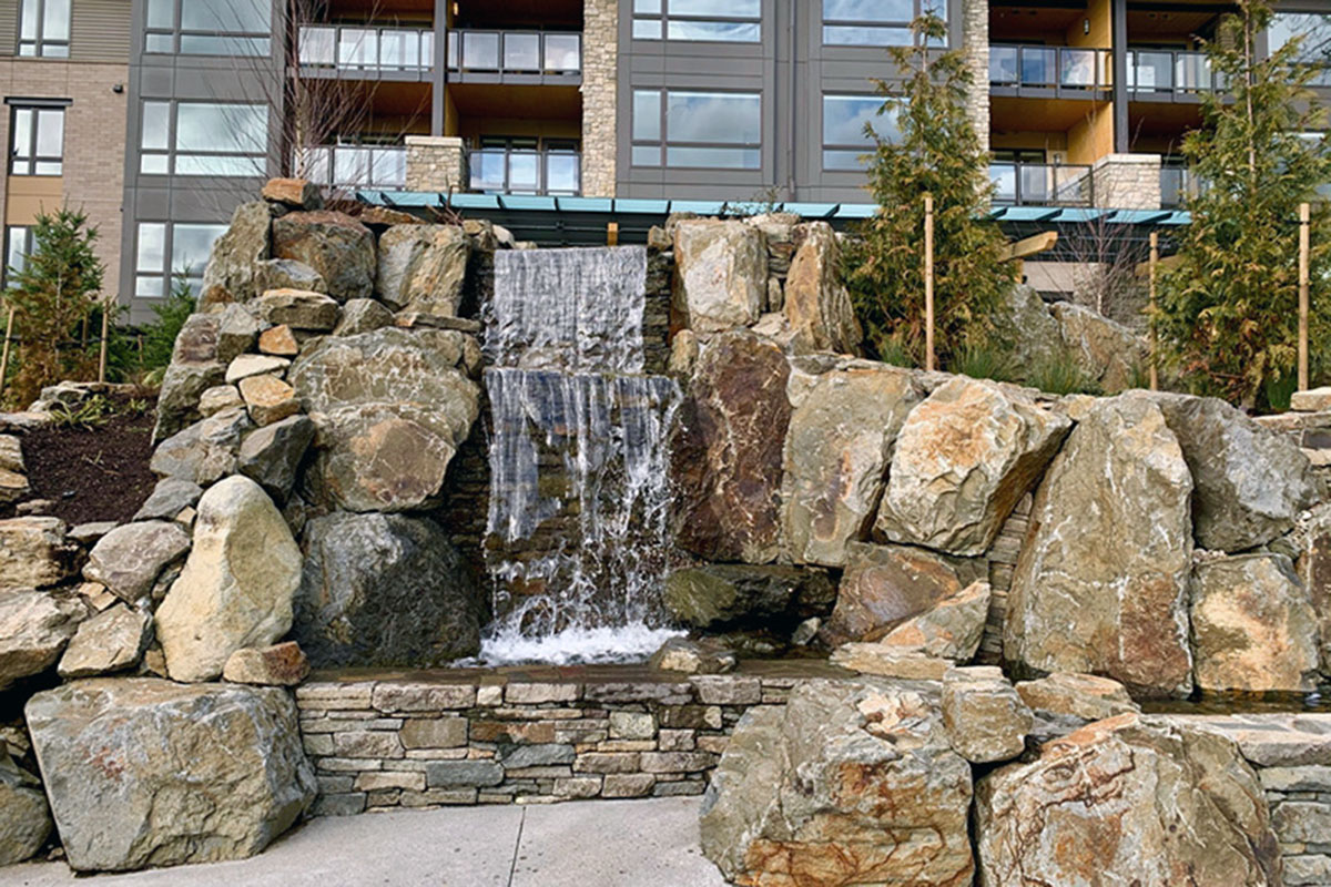 Our Greenhaven team worked with The Springs to bring their plans to life, creating two water features that mixes large boulders, natural stone, and water for a peaceful outdoor space.The placement of the water features facing both the outdoor patio and the main highway allows both The Spring’s residents and the Lake Oswego community to enjoy the tranquility that water brings.